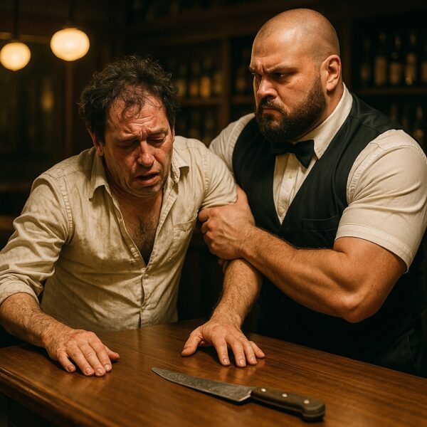 Salí a la calle, tembloroso, convulsionado, dominado por el miedo y la exasperación. El dolor de mis brazos era insoportable, pero mi depresión era peor. Entré en un bar y pedí una ginebra. Para mi sorpresa el dueño se negó a atenderme. Váyase a su casa, me dijo con cara de asco. ¿Por qué, si pienso pagar mi consumición? Váyase, usted no puede permanecer aquí. ¡Cómo dice! ¿Se está burlando de mí, mamarracho? El patrón retrocedió temeroso y buscó a alguien con la mirada. Un sujeto corpulento me tomó suavemente del brazo para sacarme del lugar. Hice un brusco amago defensivo y el dolor me encegueció. ¡Sacame las manos de encima, bruto hijo de perra! El hombre aumentó su presión sobre mi dolorido miembro. En el mostrador había una tabla de salamines y quesos, y encima de ella un cuchillo de fiambrero, de esos largos y de hoja angosta. Lo tomé instintivamente y le hice al provocador un certero tajo en la garganta. Me soltó y comenzó a roncar al ahogarse en su propia sangre mientras se iba desplomando a los manotazos sobre los salamines, las aceitunas y varios platitos de losa que se iban rompiendo contra el piso.